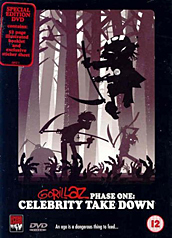 Concealed within the Back End (the final room full of computers) is a special hidden thing revolving around the Spacemonkeyz dub of M1 A1, otherwise known as Li'l Dub Chiefin'. It's entirely possible for people to find this egg with the greatest of ease the first time they watch the DVD, only to discover that on subsequent viewings, they can't access it any more. And here's why. Once the intro animation has played, and you're in the lobby with the jukebox, you must visit each room in order, from left to right as they appear in the menu bar (so that's Noodle's room, Murdoc's Room, 2D's Room, Russel's Room, the Toilets, the Cinema and the Back End). You must let each room load up completely, and once you're inside, you can select the next in the sequence. (Generally, people viewing the DVD for the first time will do this anyway, hence the confusion that comes later.)