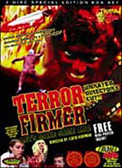 Insert disc 2 of Terror Firmer, and at the main menu slowly punch in "6 6 6" on your remote. You may only have to press "6" once, depending on your player. At the new Terror Firmer screen, press "play" to watch a short bit with Lloyd Kaufman as he tries to get an interview with Yaniv Sharon, the fat guy who ran naked through Times Square (you kinda really have to watch the film to understand this one)